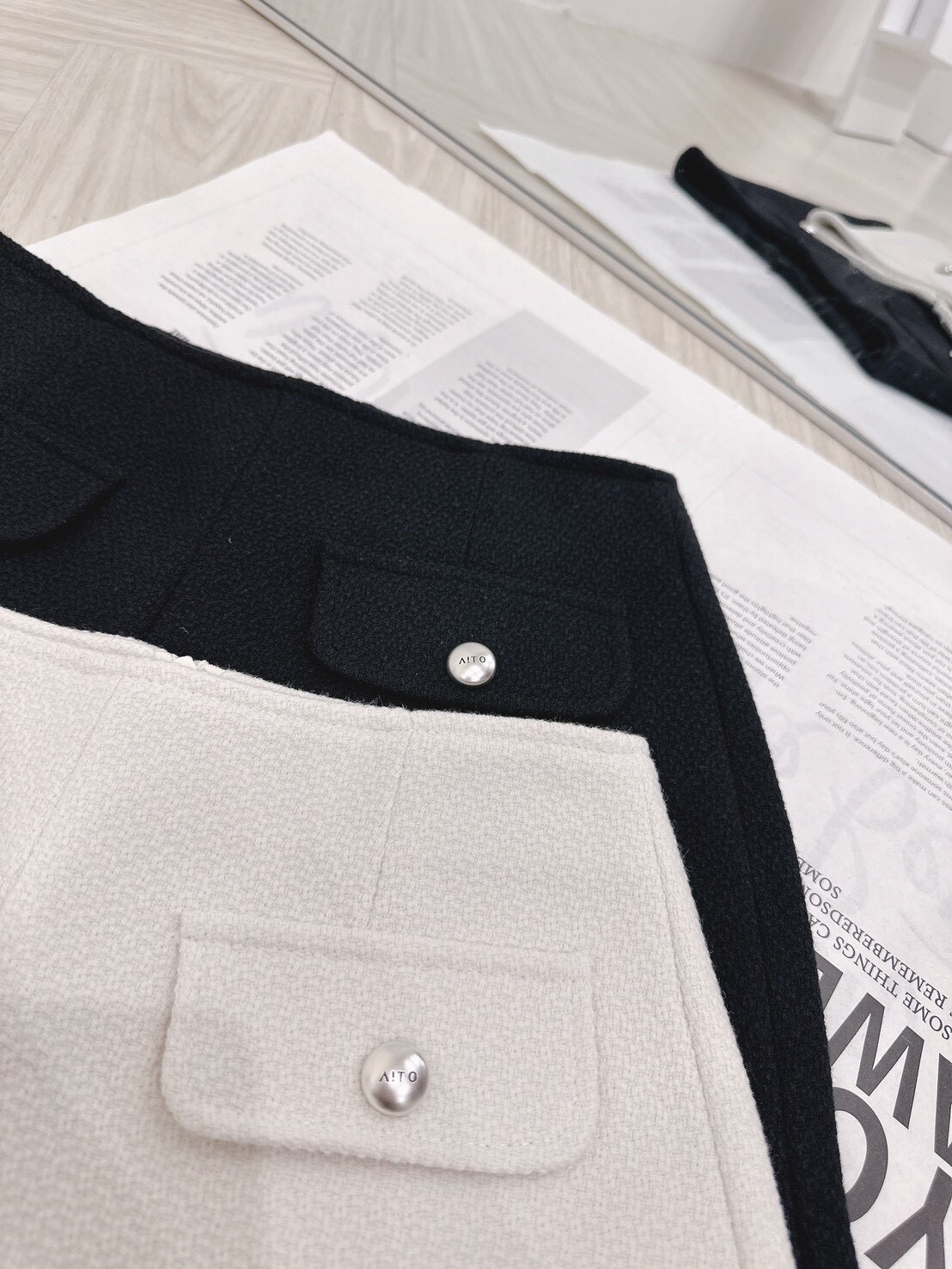 小巧的質感銀釦點綴在口袋之上