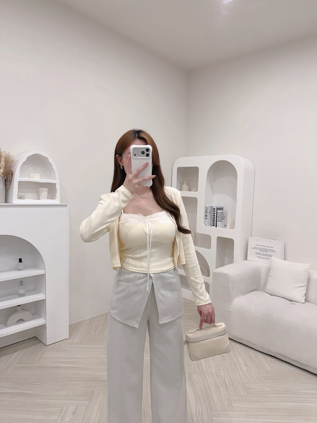 蕾絲背心+輕薄罩衫,一套搞定穿搭