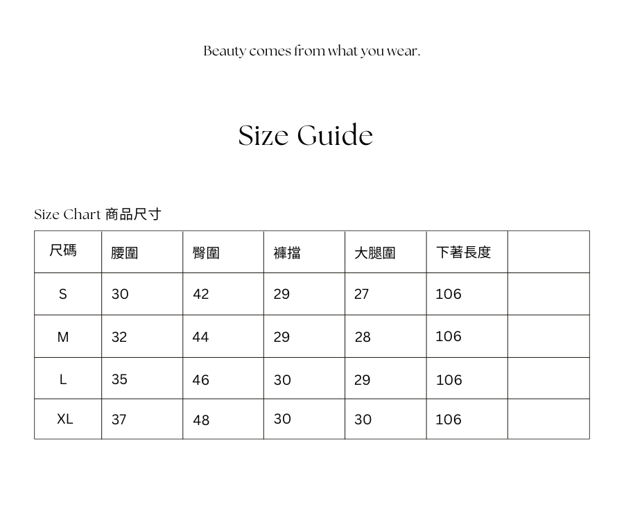 服飾因布料特性及各種因素,測量時會有1-2cm的誤差