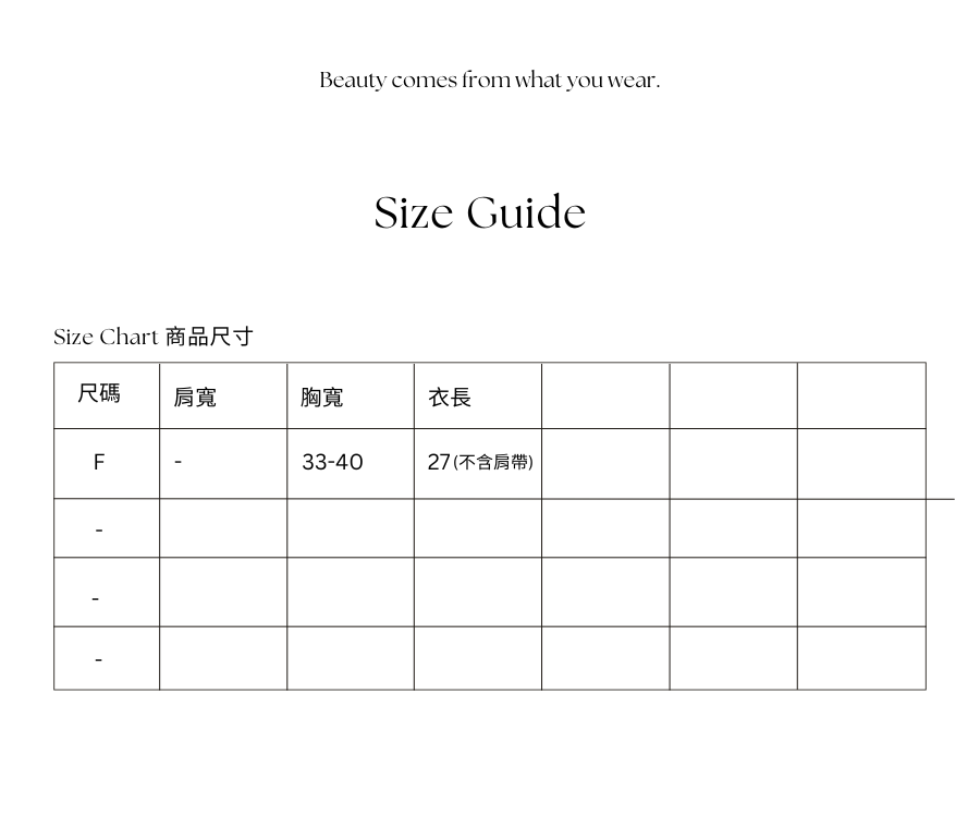服飾因布料特性及各種因素,測量時會有1-2cm的誤差