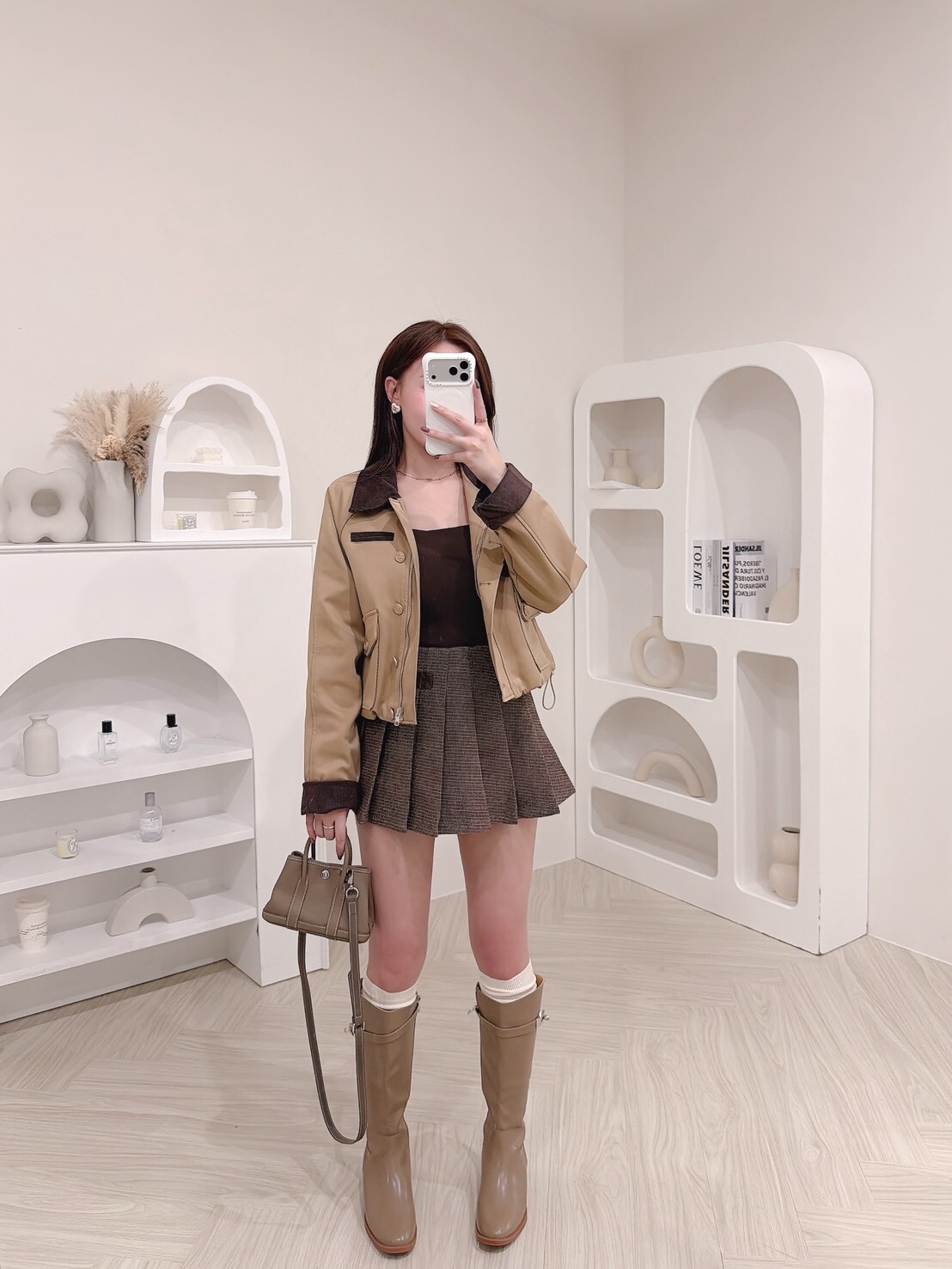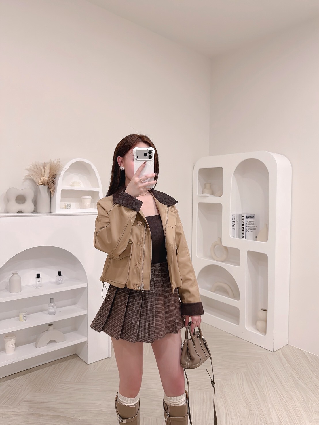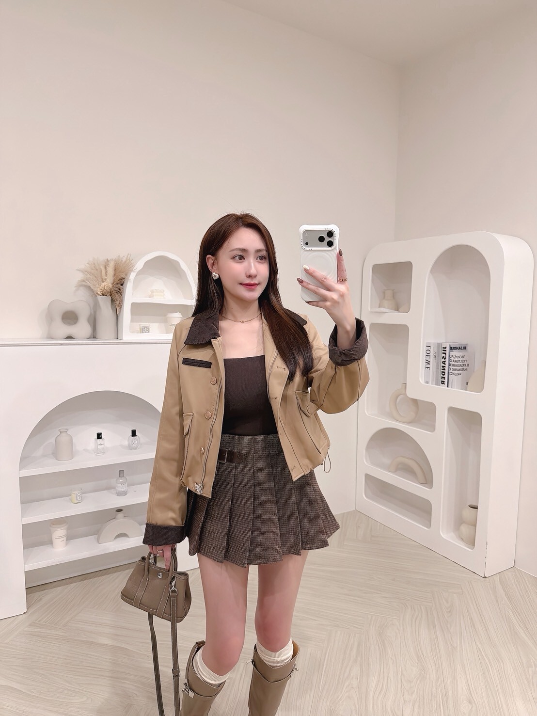 外套挺版不臃腫、裙子百摺加皮帶設計小心機滿滿
