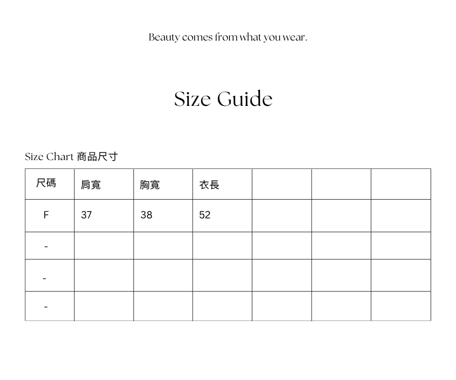 服飾因布料特性及各種因素,測量時會有1-2cm的誤差