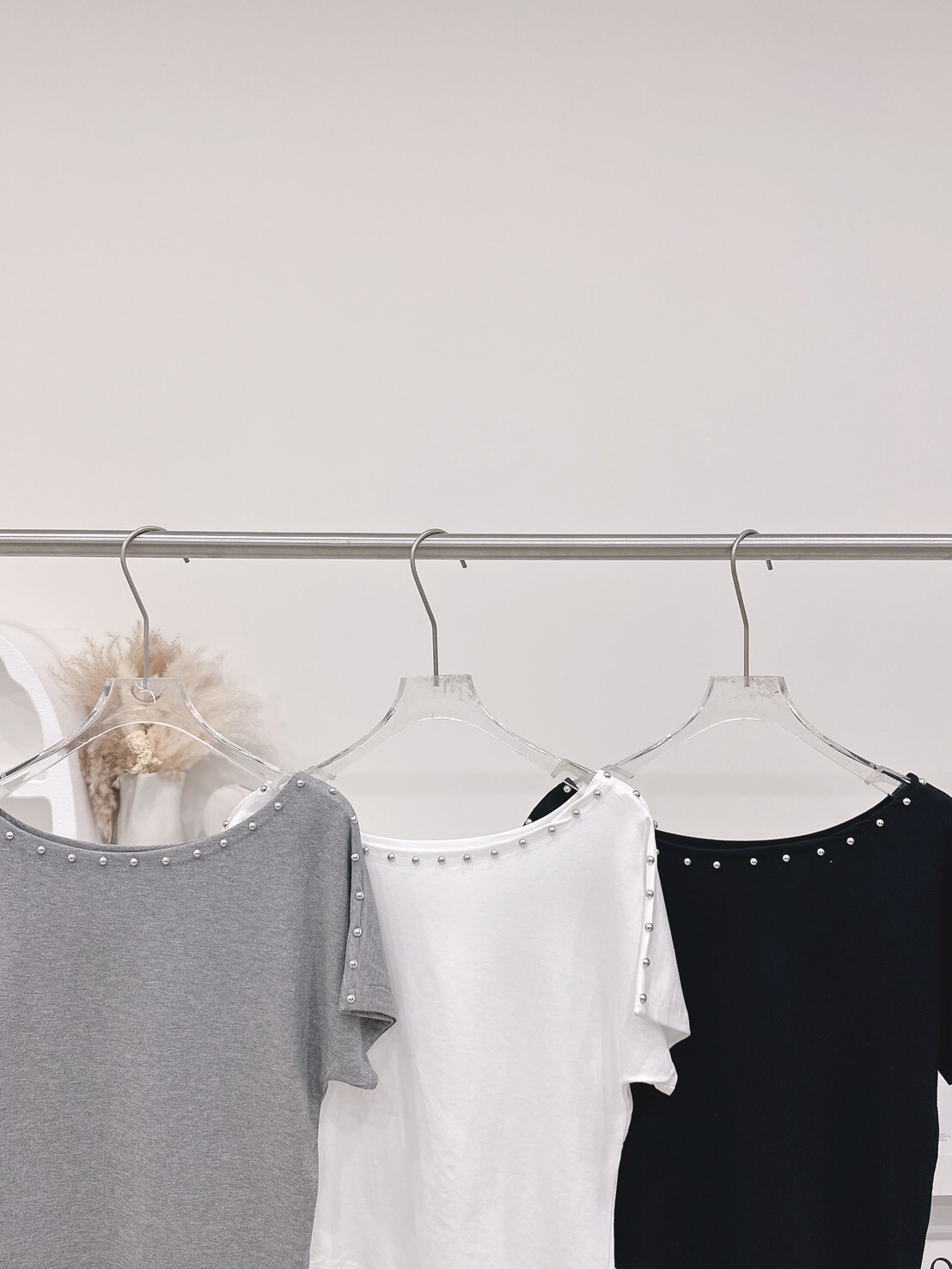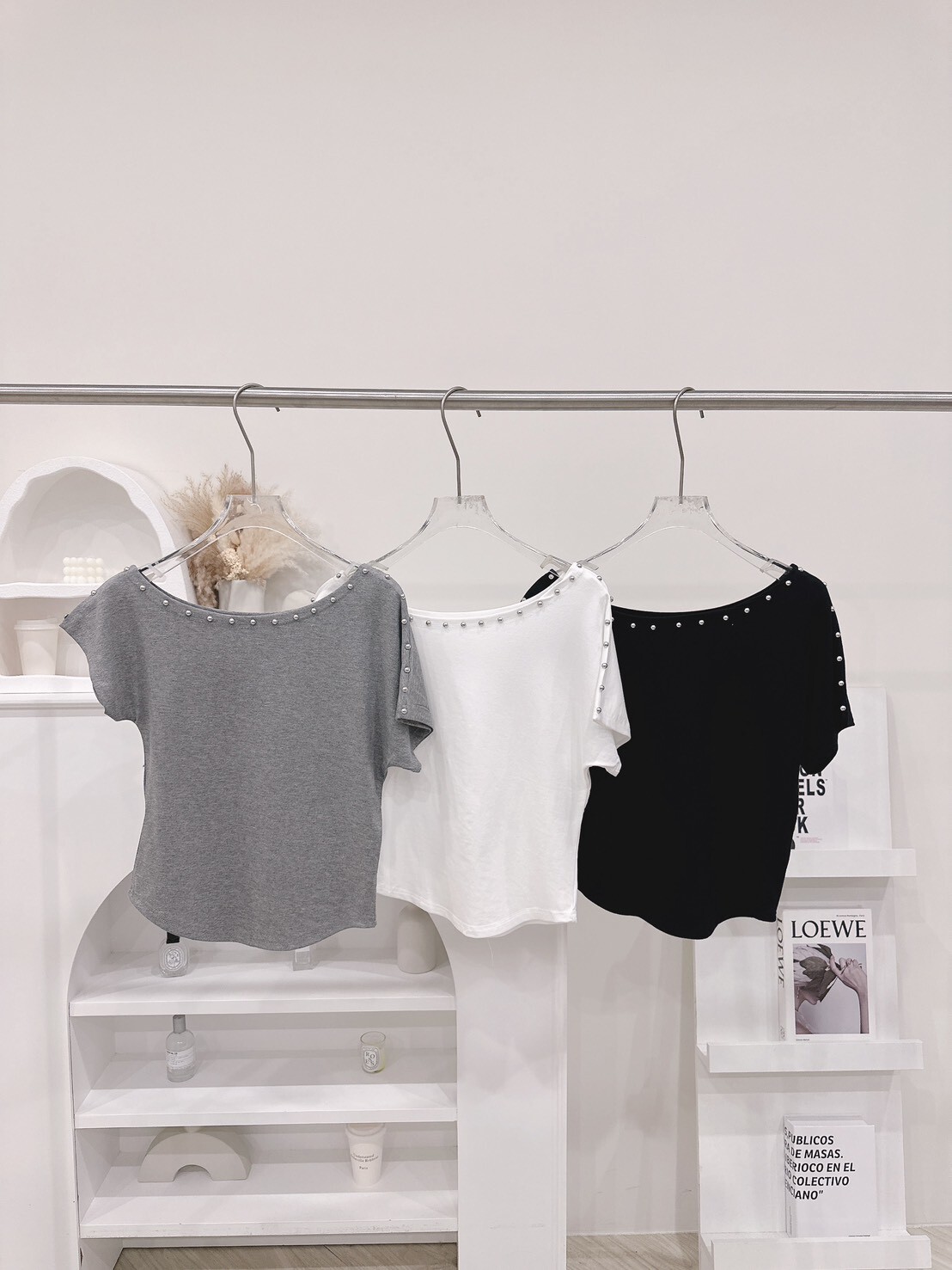 鉚釘設計感斜肩𝗧𝗘𝗘